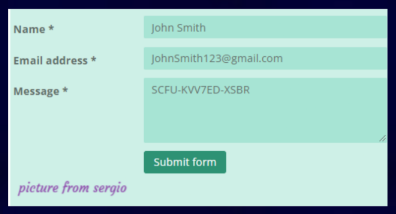 Then proceed to copy the code into the "Message *" (Code will look like this "XXXX-XXXXXX-XXXX")